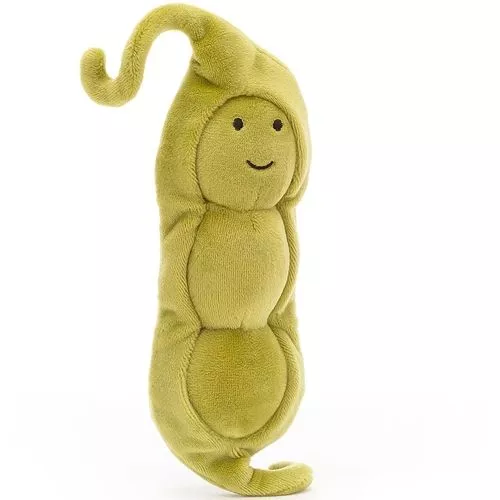 ‘Vivacious Vegetable Pea’ van het Engelse merk Jellycat zijn gezellige erwtjes, vastzittend in een peul. Met een vertederende glimlach en zwarte oogjes is dit zachte knuffelpeultje een kleine supergroente. Kinderen lopen weg met dit erwtje!