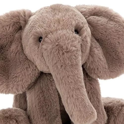 Smudge Elephant van het Engelse merk Jellycat is een dromerige knuffelolifant met een lange slurf en grote flaporen.