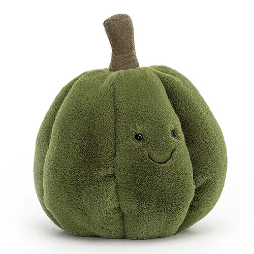 ‘Squishy Squash Green’ van het Engelse merk Jellycat is een vriendelijke pompoenknuffel om te vertroetelen. Met zijn vertederende glimlach, stoere groene kleur, mosgroene steel en kraaloogjes is deze knuffel een supergroente!