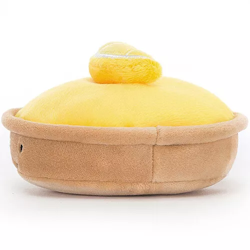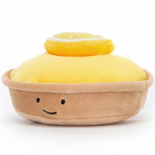 Het zachte knuffelgebakje heeft een aaibare bodem met een citroengele vulling en een geborduurd gezichtje. Vers van de patisserie is dit knuffelige citroentaartje favoriet onder fijnproevers.